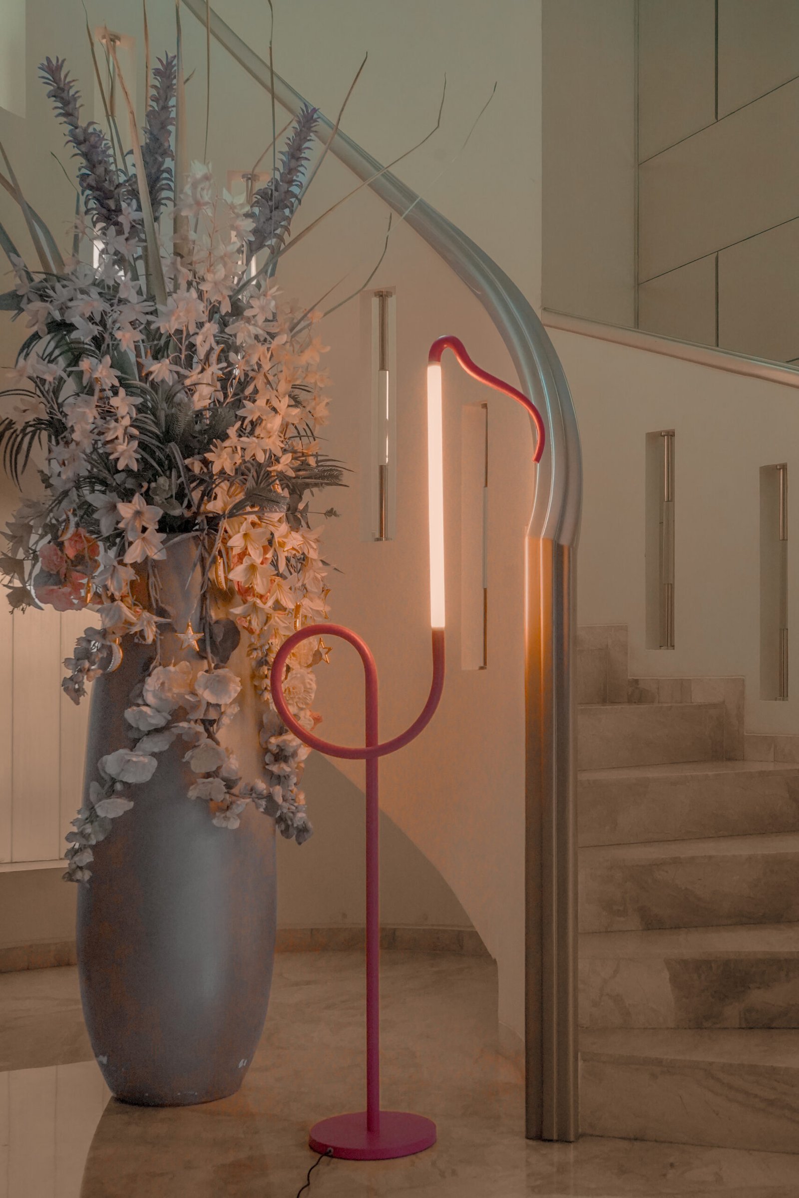 Inspired by the poised stance of a flamingo and the fluid curves of a musical note, this one-of-a-kind light fixture is designed to bring movement, harmony, and artistry into your space.